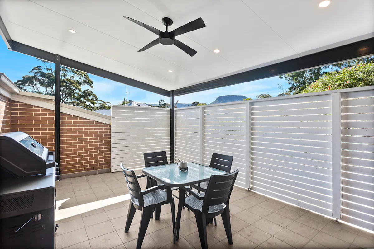 - Sundrenched courtyard with privacy screening